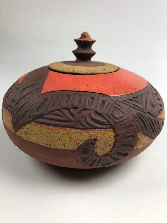 Coral & Deep Rust Lidded Jar